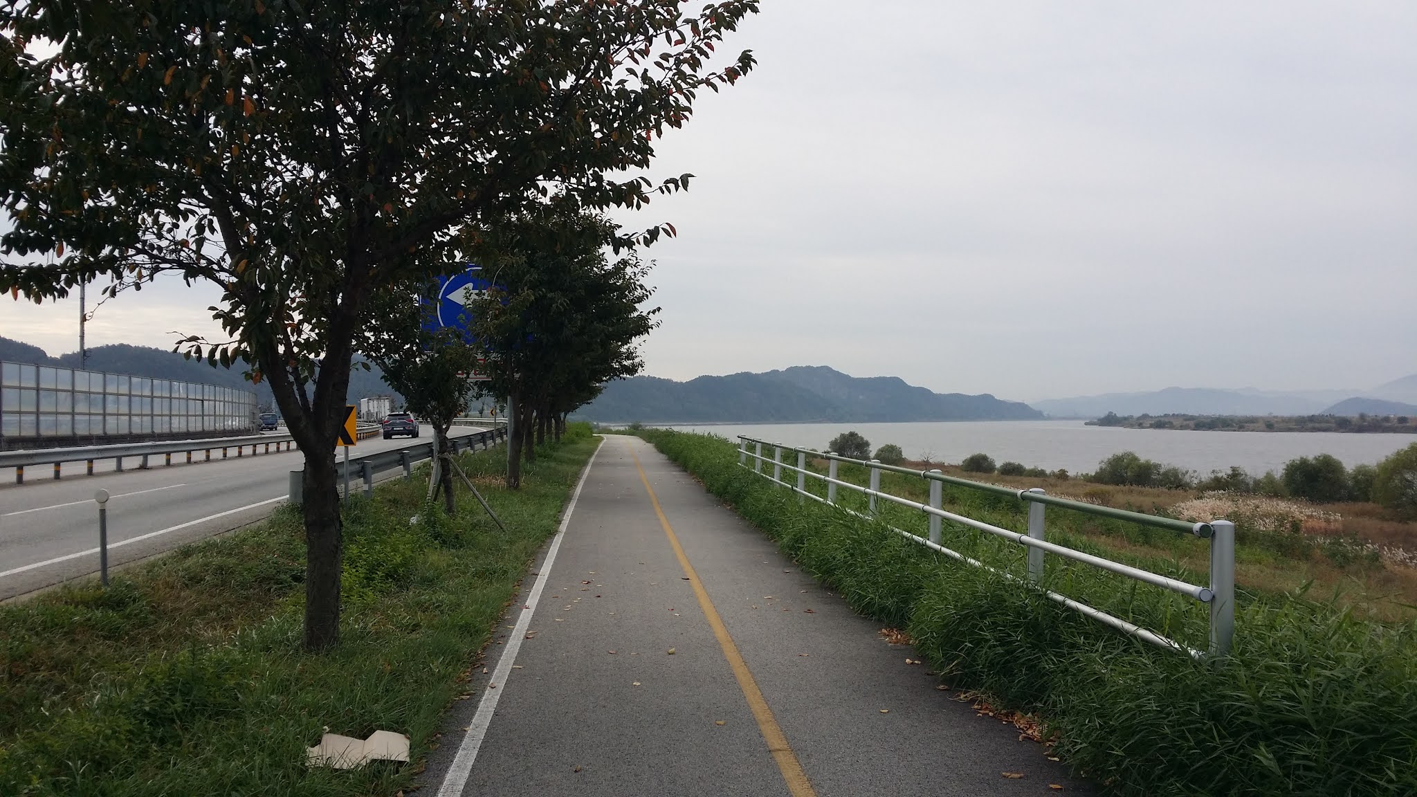 I read my entry for this leg of the walk on last year's blog. The entry mentioned "a few minor hills," but I don't recall hitting any significant hills today. What the hell was I smoking last year? There was one inconvenience: a detour right at the beginning of the walk. I had to stay on the wrong side of the river for several kilometers, but on the positive side, I now know that an uhwero (우회로) is a detour, not a right-hand route (I'd been thinking of 우회전). Walks like this are always good for learning practical vocabulary.