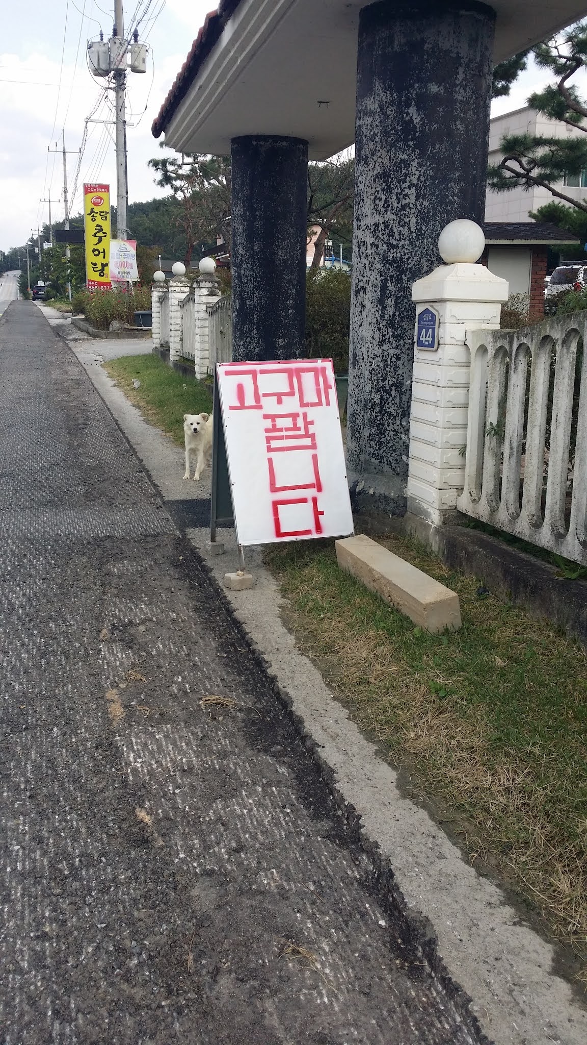 I arrived at Jangsu Pension at 3 p.m. The proprietor didn't respond to my texts (sent when I was about 4 km away) asking whether he had a room. Turns out he was asleep, and the wife(?) said they normally didn't respond to strange texts. I shelled out the usual W30,000 for Room 2, the room I had last time and the time before that. I bumped my head on the way into the room; I'd forgotten how low the door was.